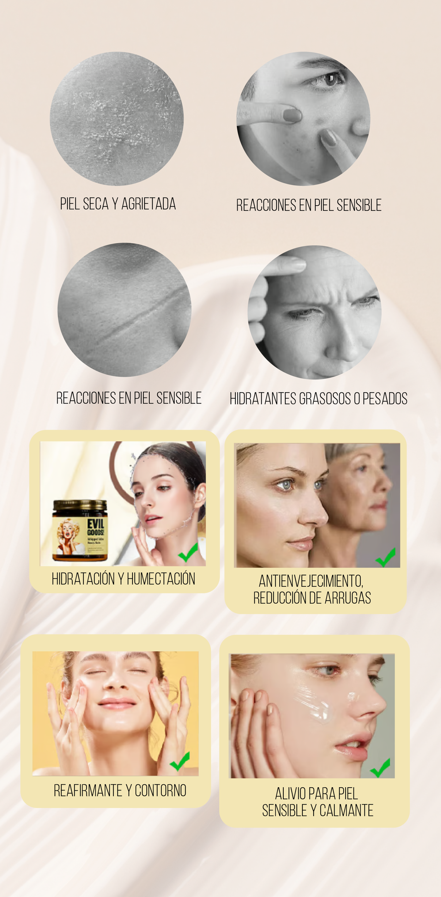 Tenía la piel opaca y sin vida, pero desde que uso esta crema, ¡otro cuento! Mi piel está más luminosa, hidratada y con mejor textura. Es como magia en un tarrito.